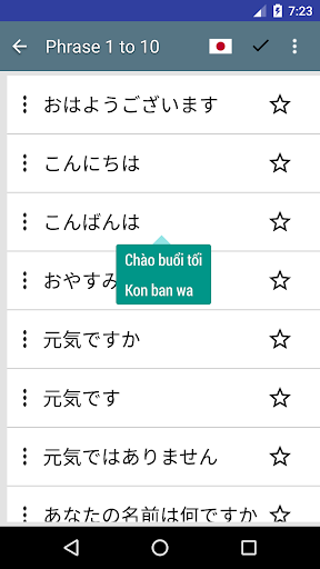 hoc tieng Nhật giao tiep - Phần mềm học tiếng Nhật tốt nhất trên Android, có các câu hội thoại phổ thông từ cơ bản đến nâng cao, có phát âm đầy đủ.