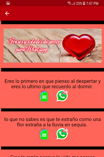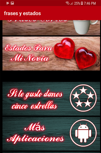 Chào mọi người! Chào mừng bạn đến với ứng dụng Hoa Kỳ cho các mạng xã hội của bạn. Đây là một ứng dụng sẽ rất hữu ích khi bạn chia sẻ hình ảnh và cụm từ với bạn bè của mình trong tất cả các mạng xã hội mà bạn đã cài đặt trên điện thoại di động của mình. Với hình phạt một vài bước, chỉ trong vài giây, bạn có thể đăng hoặc tải xuống bất kỳ hình ảnh nào bạn chọn từ giữa hàng ngàn và hàng ngàn chúng ta có. Trong ứng dụng này, bạn có thể tìm thấy các cụm từ của tình yêu, về cuộc sống, sự phản ánh, những cụm từ hài hước và buồn, mà bạn có thể sử dụng để chia sẻ bằng các mạng xã hội của mình với bạn bè hoặc người thân của mình, bạn có rất nhiều thứ để đọc và chia sẻ, họ cũng GO liên tục cập nhật vì bất kỳ ai cũng có thể thêm chúng rất dễ dàng, mà không cần phải đăng ký, bạn chỉ cần truy cập biểu mẫu để thêm các cụm từ lãng mạn mới hoặc bất kỳ danh mục nào, chọn danh mục mà nó thuộc về nó viết và đặt tên của bạn làm chữ ký hoặc Nếu bạn thích, bạn có thể đặt ẩn danh. Đó là một tập hợp các quốc gia cho tất cả các dịp, mát mẻ, tình yêu, buồn, xinh đẹp, đàn ông, cô gái, về cuộc sống, tiếng cười. Nếu bạn tìm cách khởi chạy một thông điệp lãng mạn, về tình bạn hoặc tích cực thông qua các mạng xã hội của bạn nhưng bạn không biết cách lấy cảm hứng, cụm từ và trạng thái cho mọi thứ là một ứng dụng mà bạn có thể thay đổi tin nhắn hàng ngày mà không cần lặp lại. Được tổ chức theo danh mục, bạn có thể tìm thấy những cụm từ ngắn, tình yêu, tình bạn, tình bạn, tình bạn, thúc đẩy, lãng mạn hoặc dễ thương trong số nhiều người khác.