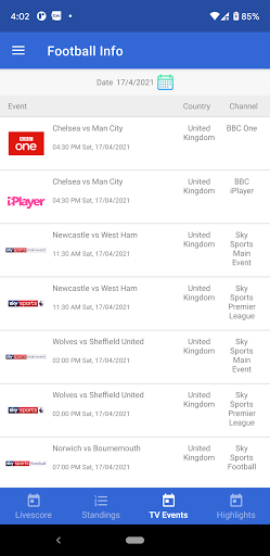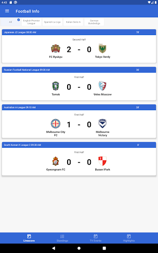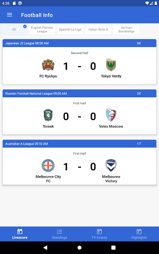 Ứng dụng "Thông tin bóng đá" cung cấp cho bạn điểm số trực tiếp, sự kiện TV, kết hợp video và điểm nổi bật.Với ứng dụng "Thông tin bóng đá", bạn có thể thêm các giải đấu yêu thích của mình, nhận điểm trực tiếp và kết quả từ tất cả các trận đấu và các cuộc thi trên toàn thế giới.