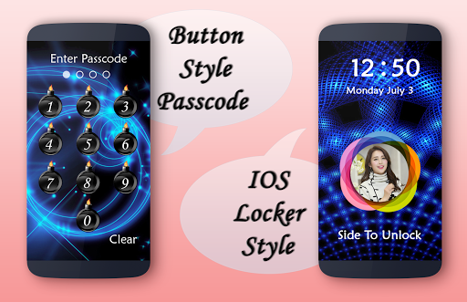 in this app you also set your name with your photo. neon blue DIY Lock Screen is application to protect your smartphone through using pin/passcode or pattern, no one can enter into your phone without correct four digit password or current pattern.