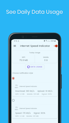 Ứng dụng chỉ báo tốc độ Internet hiển thị tốc độ Internet trên thanh trạng thái và sử dụng dữ liệu hàng ngày.Bạn có thể theo dõi việc sử dụng dữ liệu WiFi và di động hàng ngày của mình với ứng dụng chỉ báo tốc độ Internet.Nó cũng có một máy đo tốc độ Internet nơi bạn cũng có thể kiểm tra tốc độ tải lên và tải xuống của mình.
