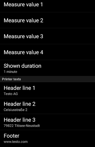 • In các giá trị đo hiện tại trên máy in Testo 0554.0543, 0554.0620 hoặc 0554.0621.