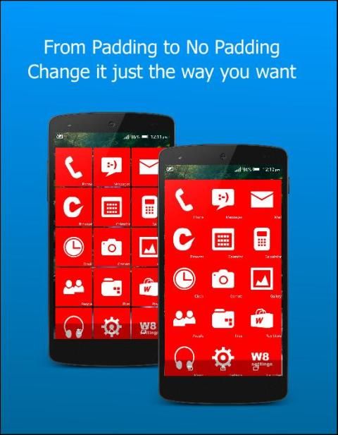 Unlike other launchers such as Nova, Apex, GO launcher, W8 launcher is built from scratch. Themes and icon packs will be available soon too