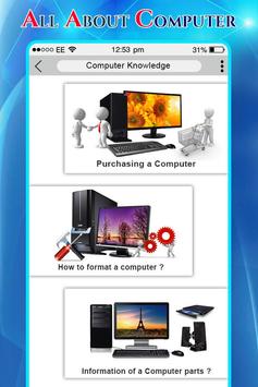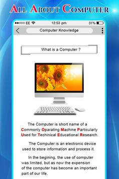 All About Computer app will help you increase your computer knowledge. Using this app you will be able to learn how to use a computer. This app includes basic information about computer operations. Also in this app various computer parts related information is included.