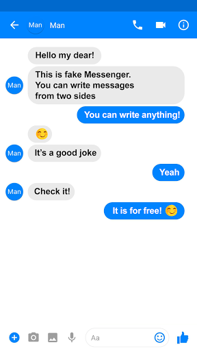 Fake messenger is a free app which can be used to fool friends that you are talking with someone on the chat. You can set up a fake conversation and fill in all messages - from two sides! It's a great way to make a funny joke!