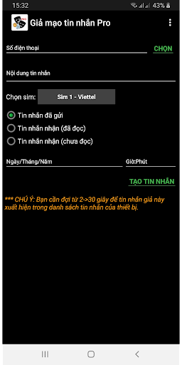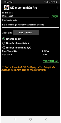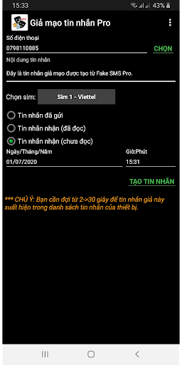 *** CHÚ Ý: Vui lòng dùng thử phiên bản MIỄN PHÍ (https://play.google.com/store/apps/details?id=vn.psys.fakesms) trước khi mua phiên bản PRO này. Nếu phiên bản MIỄN PHÍ chạy lỗi trên thiết bị của bạn, vui lòng mua bản PRO trên Amazon Store / Samsung Store (do Google Policy nên chúng tôi không thể cập nhật phiên bản này lên Google Play):