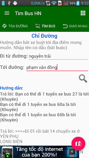 Ứng dụng xe bus Hà Nội là ứng dụng dành cho các thiết bị smartphone android. Với các tính năng định vị, tìm và chỉ đường xe bus cho mọi người. Cung cấp các thông tin về xe bus và các tuyết đường có xe bus đi qua trên địa bàn hà nội, Mong rằng ứng dụng này làm hài lòng các bạn. Mình cũng là sinh viên học tập là chủ yếu, ứng dụng có gì chưa chuyên nghiệp mong các bạn thông cảm nhé.