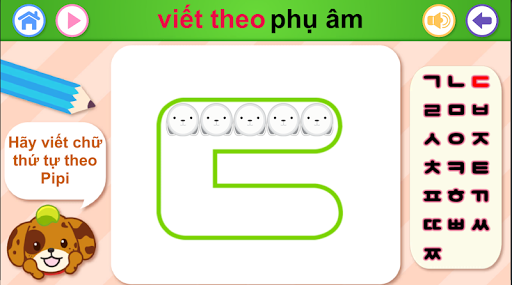 Theo dõi các chữ cái Hàn Quốc sau và sao chép chuyển động của khuôn mặt đáng yêu Pipiùi