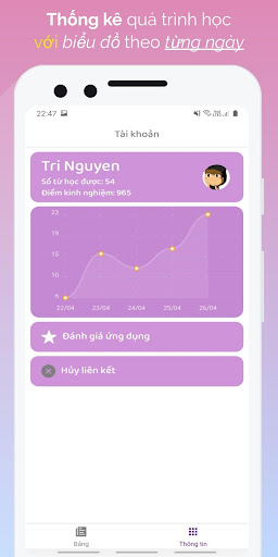 Thông tin: Hệ thống sẽ đếm các từ bạn đã học, thống kê theo từng ngày để bạn có thể theo dõi quá trình học của mình.