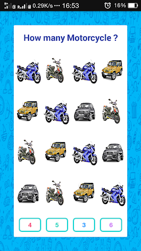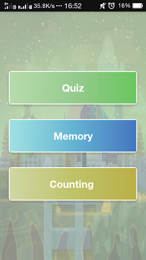 - Choose from 3 different activities: Quiz, Memory Game and Counting.