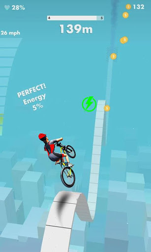 Take it to the MAX and drag the fun to the ultimate next level. Rush through the void while dodging obstacles in this endless roller coaster ride. Think quick and tap to switch lanes in order to reach incredible speeds! Play with the obstacles and make your BMX run faster so to leave the opponents behind. Cross all the ramps and prepare yourself for unforgettable mega ramp stunts rides and real racing madness. You'll flip over our most thrilling airborne tracks in bicycle game. Perform multiple jumps and flips at the same time to earn more points. Win the BMX flip madness championship to discover new adventures along the way. Volunteer and keep challenging the opponents and do master your bicycle riding skills high in mad BMX riding games. Explore completely the whole lot of new mega stunts tracks for bicycle racing in bmx madness & bicycle riding games. Immerse yourself in these beautiful surroundings while you enjoy state of the art graphics that are a true flipping & rolling BMX for your senses. This simple mini racing game will impress you with its beautiful art style in flip madness bmx games.