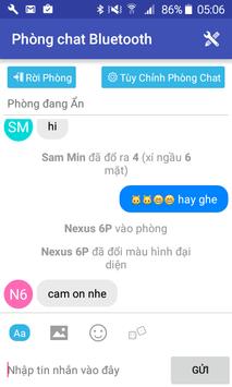- Chat với nhiều người bạn trong cùng 1 phòng (số lượng tùy thuộc vào thiết bị của chủ phòng có thể kết nối cùng lúc được với bao nhiêu người thông qua Bluetooth, bình thường là 8)