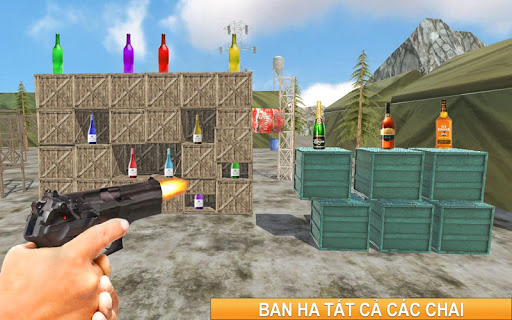 Trò chơi bắn súng 3D cho phép bạn chụp ảnh với những trở ngại và rào cản khác nhau theo cách của bạn. Cố gắng hoàn thành các nhiệm vụ không thể và bắn với súng ngắn bắn tỉa thực sự. Trò chơi bắn súng chai 3d mang lại cho bạn một cảm giác bắn súng chai thực sự như một cây cung và mũi tên bắn cung bắn cung. Giai đoạn đầu tiên của trò chơi bắn súng miễn phí thực sự là cấp độ đào tạo cơ bản. Bạn phải làm quen với mục tiêu từ xa để thổi chai xuống trong trò chơi nổ chai này. Bạn là game bắn súng chai tốt nhất để hoàn thành tất cả các chai trong trò chơi chai 3d này.