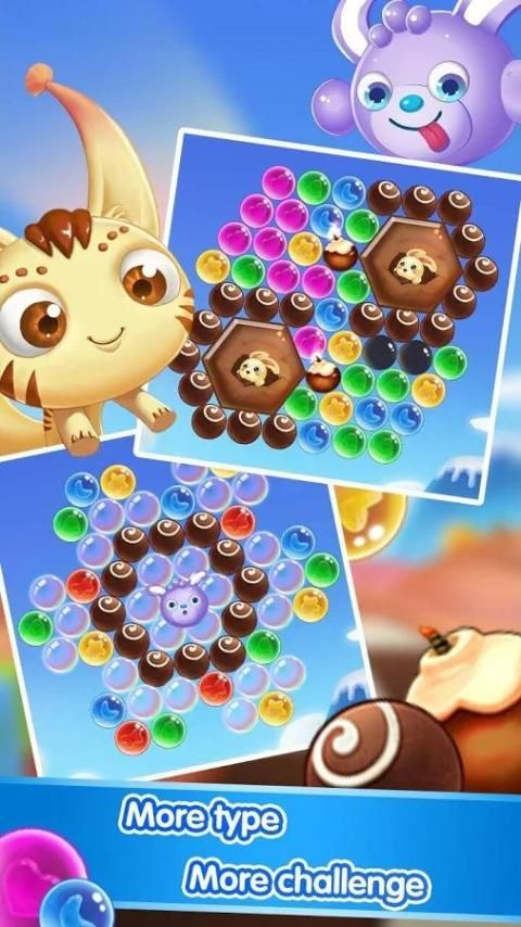 Shooting bubbles to save Jenney's friends in candy paradise. It's the most fantastic bubble shooting match 3 game! Vivid graphics, relaxing music, and the well designed levels!