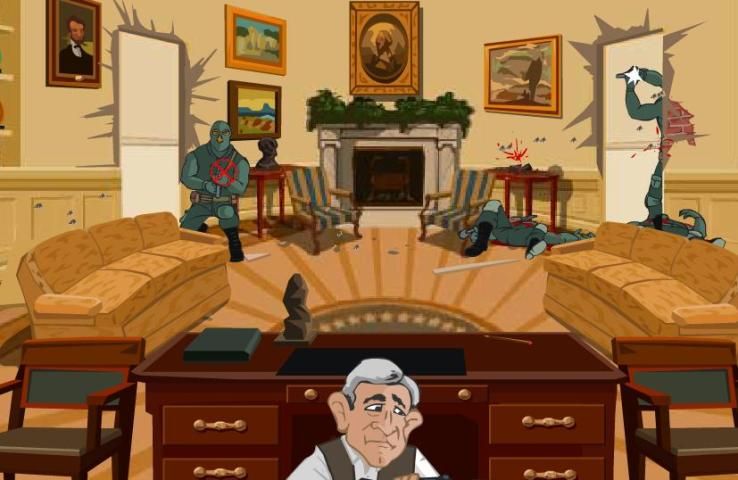 Some masked gunmen have sieged the White House and killed all the guards.