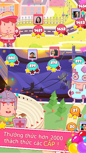 Kết nối với Facebook và khám phá những điểm đến như mơ trong mơ như Cloud Pop City, Circus, The Wild West và hơn thế nữa! Với hơn 2000 (và được thêm vào mỗi tháng) các cấp độ bong bóng trong trò chơi, chúng tôi sẽ đảm bảo hành trình của bạn không kết thúc quá sớm!