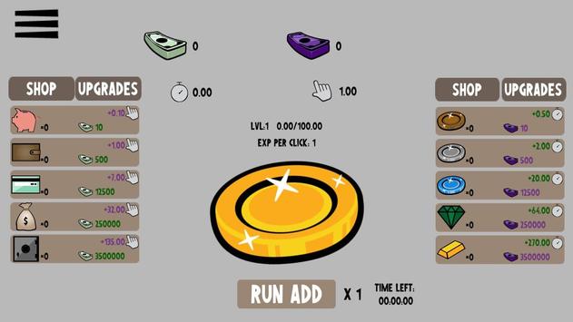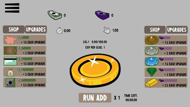 In Dual Coin Clicker you have 2 types of currencies an Active Clicking one (Purple) and an Idle one (Green). Both depend on each other, the more you play the more you gain.