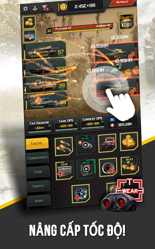 Bùng nổ trên mặt đất bằng việc lướt tay trên màn hình! Bạn là tổng tư lệnh, với một đội quân để xây dựng và lãnh đạo vững chắc, các chiến binh mới chỉ cần nhấp chuột là có một trận chiến hiện đại. Xây dựng lực lượng của bạn bằng cách triển khai xe tăng tới chiến trường, và nhấp chuột ra là có thể giải phóng khỏi một cuộc tấn công không ngừng.