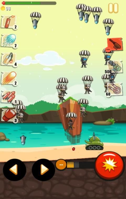 Defend your land by the attackers! You have to defend your land and survive the oncoming attacks from the ruthless enemies. Lots of Soldiers, Bombs, Planes, Rockets, Bazooka man, Aliens, UFOs. All enemies wants to defeat you! Drive your tank and smash all enemies.