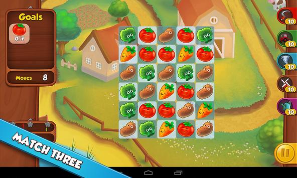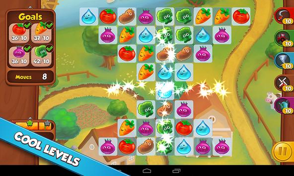 Instead, you have fun and challenging match 3 puzzles with delicious & fresh farming products - a delightful experience with countless juicy vegetables, fruits in the match 3 challenge! This is the new and juicy farm puzzle experience!