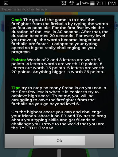 →It is very challenging and it will adapt to your typing skills. The more levels you finish, the bigger the words are and the faster the fireballs become