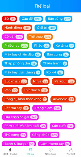 Nó bao gồm tất cả các loại trò chơi như arcade, phiêu lưu, thể thao, đua xe, câu đố, logic, bộ nhớ, chiến lược và trò chơi hành động.