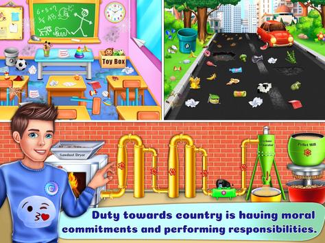 citizen of country, develop good cleaning habits for classrooms and the canteen every day, simply leave all unnecessary garbage in a dustbin, put all items on proper place and clean the mess.