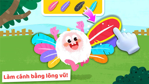 Hãy bay cùng những quái vật nhỏ! Hãy làm một đôi cánh thật đẹp nào! Làm một cái khung với các que và cành cây trước, sau đó bắt đầu cuộc phiêu lưu trong rừng để tìm kiếm lông vũ! Trang trí cánh của bạn với lông vũ và bắt đầu cuộc hành trình trên bầu trời!