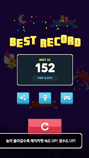 Chạm vào màn hình để nhảy Sally đến thảm ma thuật tiếp theo.