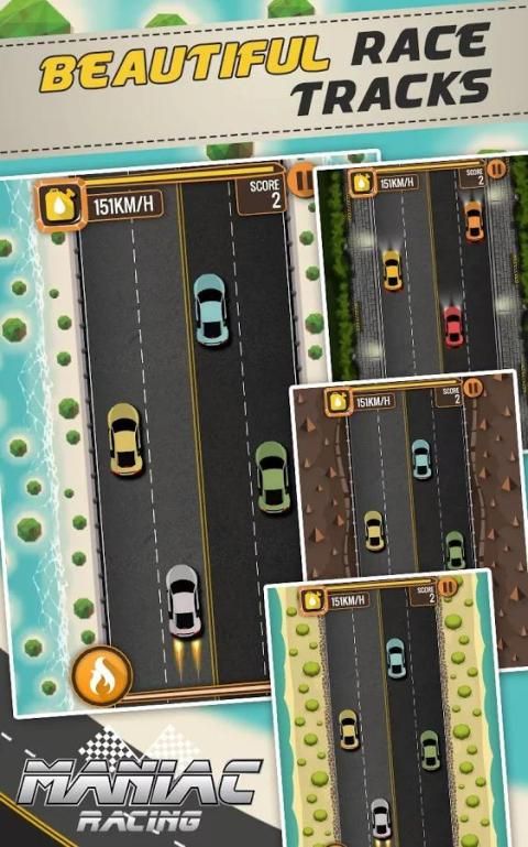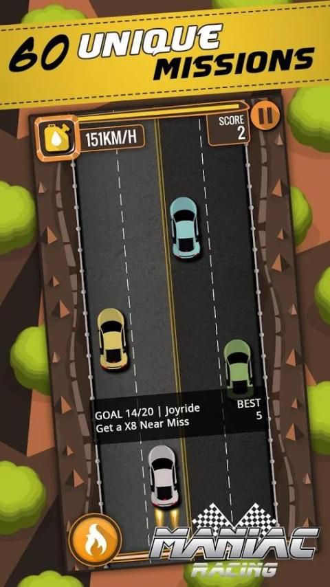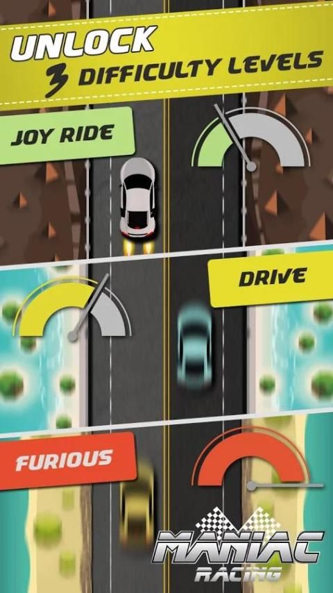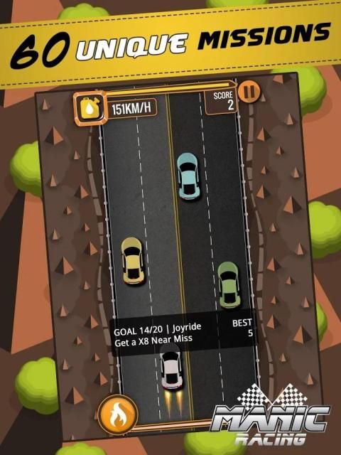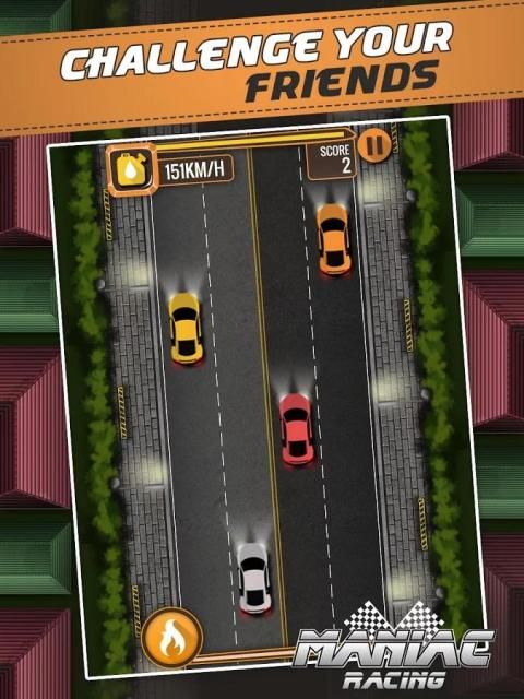 MANIAC RACING is a simple yet challenging car game. Play through 3 difficulty levels, complete all 60 unique missions. Challenge your friends to beat your high score! Drive furiously in style, get rewarded with NOS Boost. Drive like a Maniac!