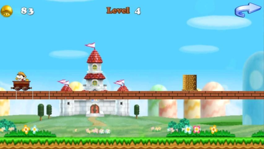 Mario Trolley a running game where you need to cross different obstacles, overcome dangers while collecting as many coins wheels as you can to score the highest..