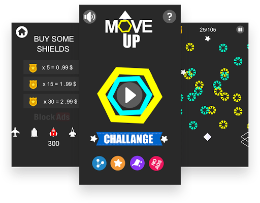 Try to reach the goal without touching the enemies. Each level of the move up game is a challenge to deliver the player to the next checkpoint . Use the shield to skip the enemies or you can skip the level too