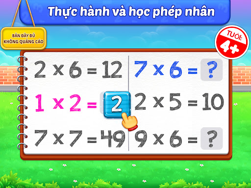 Trò chơi học toán phép nhân giúp việc học trở nên thú vị, và hơn hết là hoàn toàn MIỄN PHÍ. Không có quảng cáo, không có mua hàng trong ứng dụng và không có tường trả tiền, chỉ là sự tốt đẹp về mặt giáo dục an toàn cho cả gia đình.
