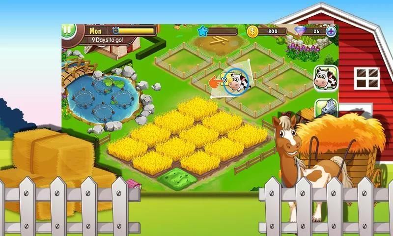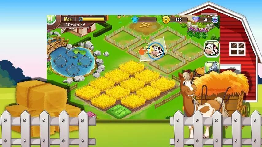 - Hãy xây dựng và nâng cấp trang trại của bạn. Chú ý đến cây trồng, sức khỏe của gia súc và chữa trị cho chúng. Bán hoặc cải thiện cánh đồng/kho thóc/bể nước để mở rộng trang trại của bạn.