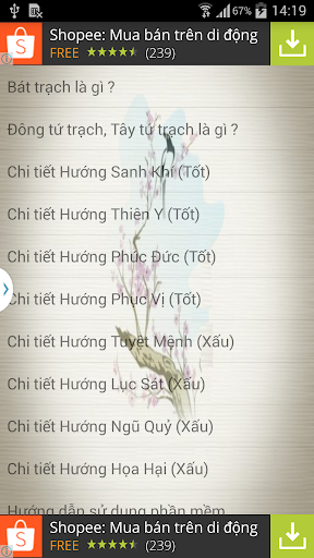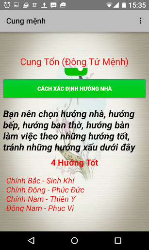 Xem hướng nhà "Phong thủy" là một ứng dụng cho phép bạn xem hướng phong thủy tốt và xấu với mệnh của bạn theo năm sinh âm lịch.