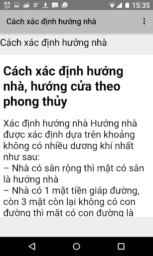 Xem hướng nhà "Phong thủy" là một phiên bản khác của la ban phong thuy v1.0 dành riêng cho các máy không có cảm biến la bàn. Xem hướng nhà "Phong thủy" đưa ra thông tin về các hướng phong thủy tốt xấu cho bạn mà không cần cảm biến la bàn.