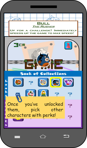 - cute, unlock-able characters that provide perks for different stages