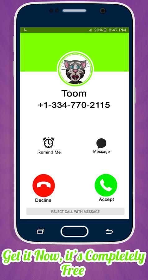 Virtual pets and talking baby kitten lovers say hello to this New virtual tom pet calling app! With this real talking tom fake call simulator you will be able to simulate real call from the lovely baby kitten tom the talking pet star, by scheduling a fake call from talking virtual pet tom cat. This talking baby kitten tom calling app let you to personalize fake call from talking tom cat and talk to talking cat tom on the phone and surprise your friends with this funny tom cat pretend call. Now and thanks to this cute kitten talking cute kitten tom call prank and cat games you can set fake call from tom talking the cat to receive a call from virtual pet tom the talking cat that baby kitten tom cat pretend call is contains the baby kitten and cute kitten sounds and virtual pet voices, when you answer the incoming call from talking baby kitten tom baby kitten you will find out an amazing caller voices to make this adopt baby tom cat pretend call and tom the talking baby skitten fake call simulator more realistic and make all friends think this virtual pet tom the talking cat call prank is a real talking tom calling app that can get incoming call from talking baby kitten tom cat in fact it's just adopt baby talking cute kitten tom fake call simulator and cat games,