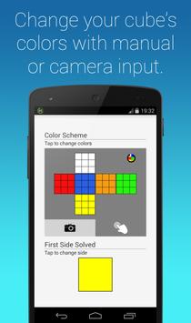 You can use your phone's camera to take pictures of your cube, or just simply put the colors in manually and this app will solve your cube for you. You just need to follow the instructions.