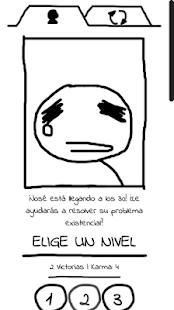 Juego de preguntas y respuestas con 60 niveles totalmente independientes de sí pero con una bizarra historia oculta. Sistema de karma con minijuego RPG en una cárcel para expiar tus pecados.