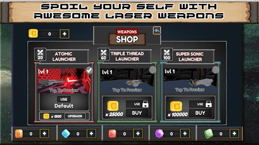 -> Mua / nâng cấp vũ khí, laser, ký tự.