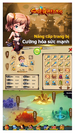 - Nâng cấp kỹ năng, nâng cấp chiến binh và anh hùng với những chỉ số