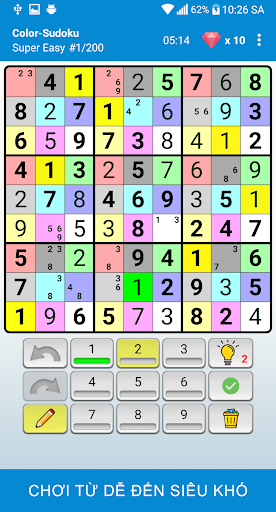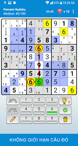 - Có 6 cấp độ từ rất dễ đến rất khó phù hợp với nhiều lứa tuổi, có kinh nghiệm hay mới bắt đầu làm quen với Sudoku.
