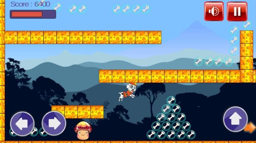 # Simple and easy to play. Place your thumbs on the either side of the screen and get started. Use the arrow keys on your left to move your puppy sideways. Tap the arrow key on the right side to jump over the obstacles. To jump twice touch this arrow key quickly for a Double Jump. Collect the bones to achieve a great score.