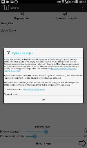 Divide players into teams, usually in pairs. Put words in a hat. Hat is passed around. Players try to explain as much words to his partner as possible in the given time (usually 15 seconds). You cannot use cognate words. Non-guessed words go back to the hat.