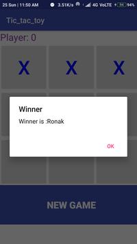 Tic Tac Toe is a game for two players, called "X" and "O". The player who places three respective marks in horizontal, vertical, or diagonal row, wins the game. Lets enjoy the Game.