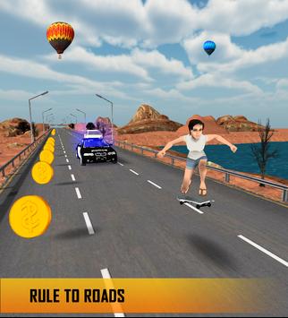 Experience thrill of being hero of skater in unique various environments. From desert to hilly mountains track from village to solid roads of city all you can find in this game. Get ready for addictive game play experience that combines the excitement of fast and furious feats with dangerous wacky roads. Try to be one of the fastest skateboard surfer in the global leader boards. Surf in the endless highway roads by overtaking traffic. A wide variety of challenging as well as surviving missions with many power ups and power boosts that will help you to accomplish these missions. Stunning graphics, smooth control and detailed environments will take to real life skate board surfing experience. Become a professional skater by completing each level of game it is much more then entertainment.