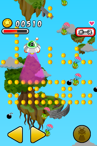 Hãy vận hành UFO bằng nút bên phải và nút hút và lấy tiền!