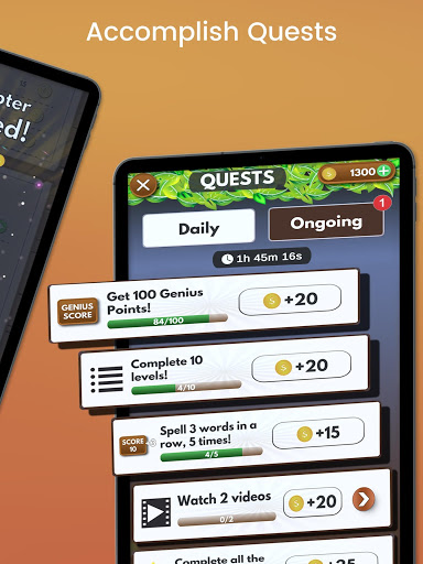 Giành thêm tiền xu miễn phí khi bạn tìm thấy những từ thưởng dễ hoặc khó khăn! Những từ hàng ngày đơn giản hơn bạn đánh vần trong trò chơi gây nghiện từ này, điểm thiên tài của bạn càng cao! Cố gắng để có được điểm thiên tài đạt được cao nhất để khám phá kỹ năng từ vựng tiếng Anh của bạn và là một người tìm kiếm người hâm mộ Whiz!
