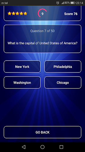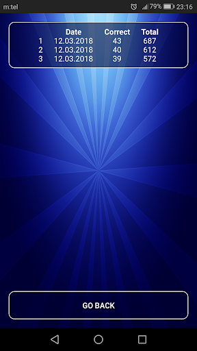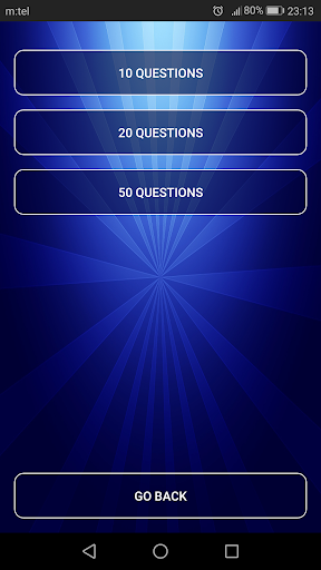- Choose between a quiz based on 10, 20, or 50 randomly generated questions and try to beat your score in all of them.